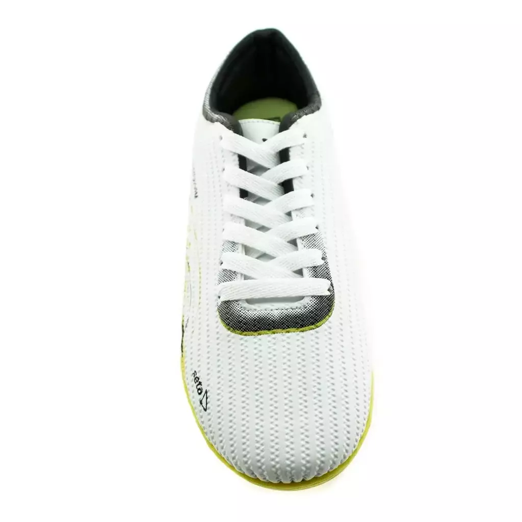 ¡Lleva el campo a otro nivel con nuestros botines de fútbol 5! Su diseño único, insPirado en las formas caprichosas de las Setas, te hará destacar en cada partido. La combinación de blanco y amarillo crea un contraste llamativo y lleno de energía.