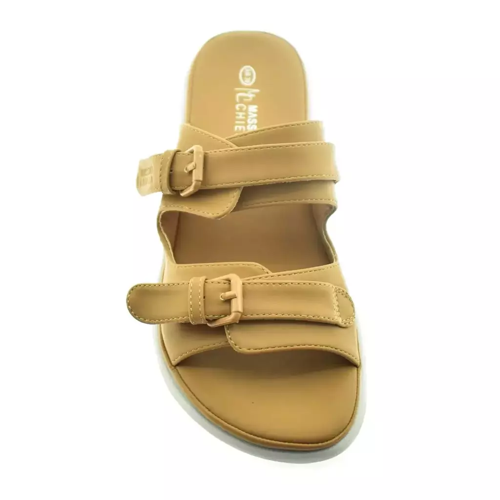 Chinelas Dama Hebilla Camel 36/41 - Massimo Chiesa: Elegancia y confort se unen en estas hermosas chinelas. Confeccionadas en materiales de alta calidad, su suave textura y diseño clásico las convierten en el complemento perfecto para cualquier ocasión. La hebilla camel aporta un toque sofisticado, mientras que la plantilla acolchada garantiza una pisada suave y relajada. ¡Perfecta para consentir tus pies!