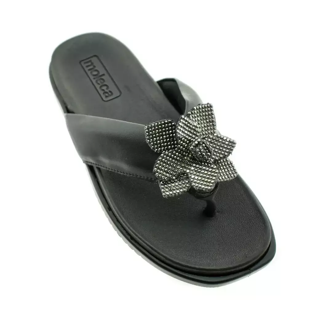 Nuestras ojotas Moleca son la combinación perfecta de estilo y comodidad. El diseño clásico en color negro se ve realzado por un llamativo aplique de flor en color brillante, agregando un toque de sofisticación a tu look. Ideales para cualquier ocasión, desde un paseo casual hasta una salida nocturna.
