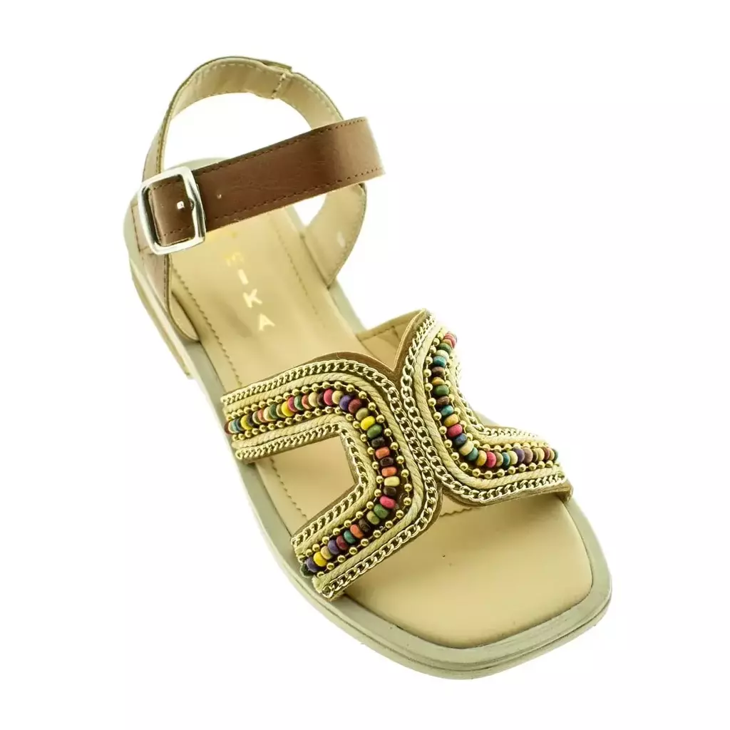 Sandalias Mika: ¡Deslumbra en cada paso con nuestras sandalias de diseño clásico! La hebilla ajustable garantiza un calce perfecto, mientras que el delicado aplique de perlas añade un toque de sofisticación. Perfectas para eventos especiales o para elevar cualquier look casual, estas sandalias combinan comodidad y estilo. Su suela flexible y cómoda te permitirá caminar con seguridad y elegancia. ¡Descubre la elegancia atemporal de Mika! Talles 35/40.