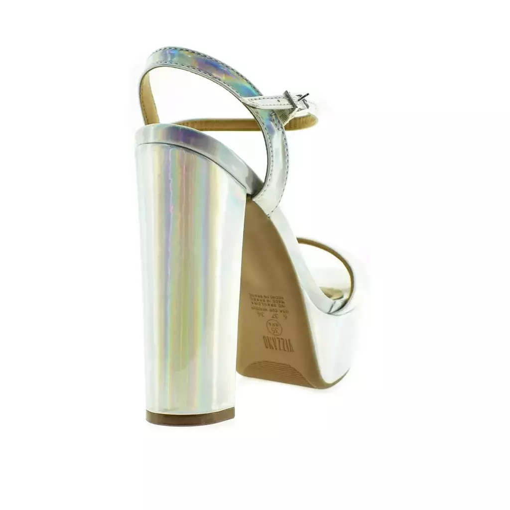 Nuestras sandalias de tacón alto con hebilla plata tornadas son la elección perfecta para mujeres que buscan un calzado que combine elegancia y comodidad. El diseño moderno y el brillo de la hebilla le dan un toque único y sofisticado. El tacón alto estiliza la figura y la plantilla acolchada proporciona comodidad durante todo el día. La hebilla ajustable garantiza un ajuste perfecto.