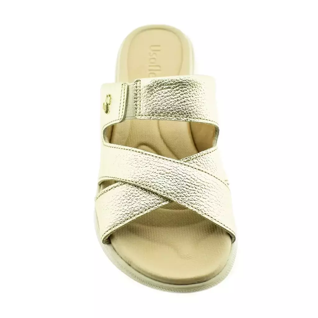 Estos suecos dorados, confeccionados con una combinación de cuero sintético suave y elástico, son perfectos para ocasiones especiales. El elástico en el empeine garantiza un ajuste perfecto y cómodo, mientras que la plantilla de memory foam proporciona amortiguación y soporte. ¡Ideales para combinar con un vestido dorado y accesorios brillantes para un look sofisticado!