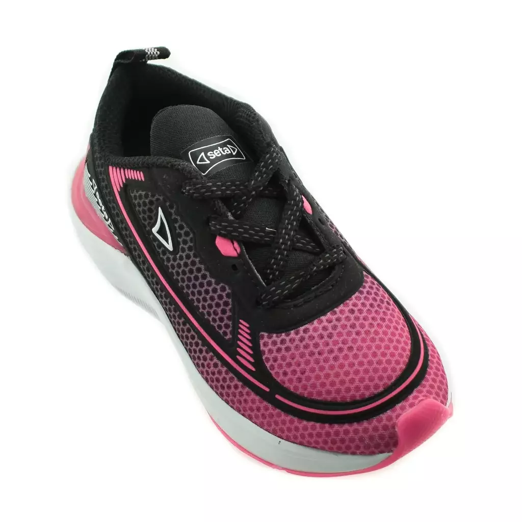 Nuestra zapatilla deportiva Seta combina el negro clásico con detalles en rosa, creando un diseño moderno y juvenil. Perfecta para niñas activas que buscan comodidad y estilo.